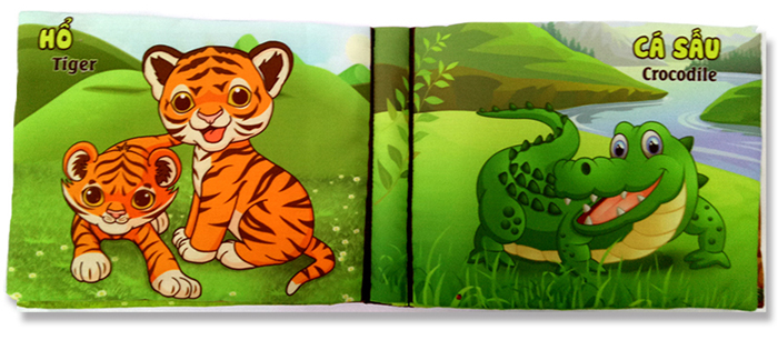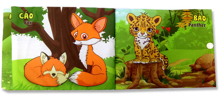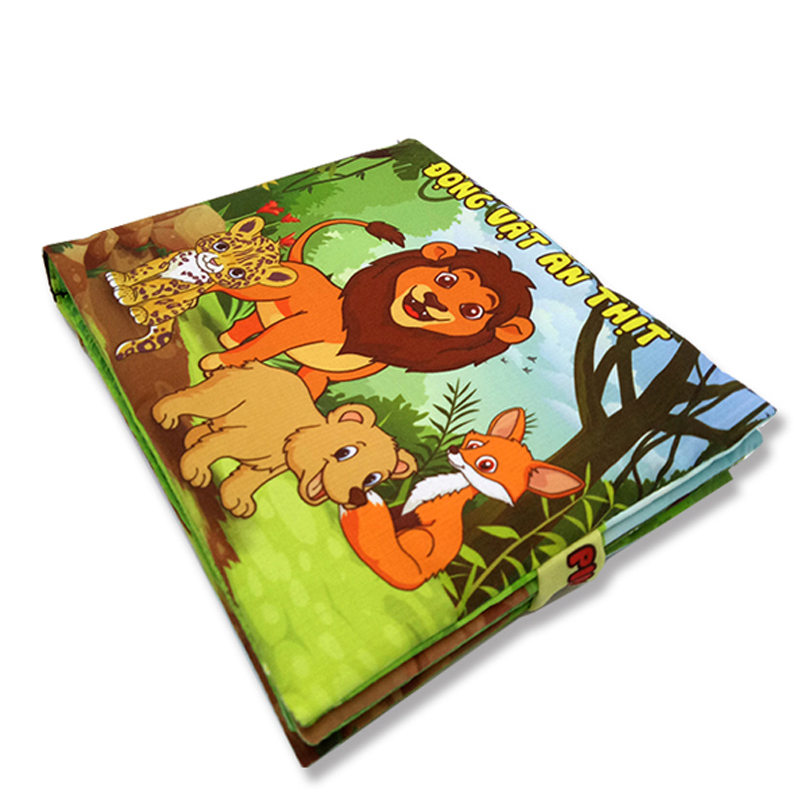 - Sách vải chủ đề động vật ăn thịt gồm 8 trang sách, mỗi trang là một động vật ăn cỏ có cách thể hiện gần gũi, thân thuộc giúp bé nhanh nhận biết và ghi nhớ.