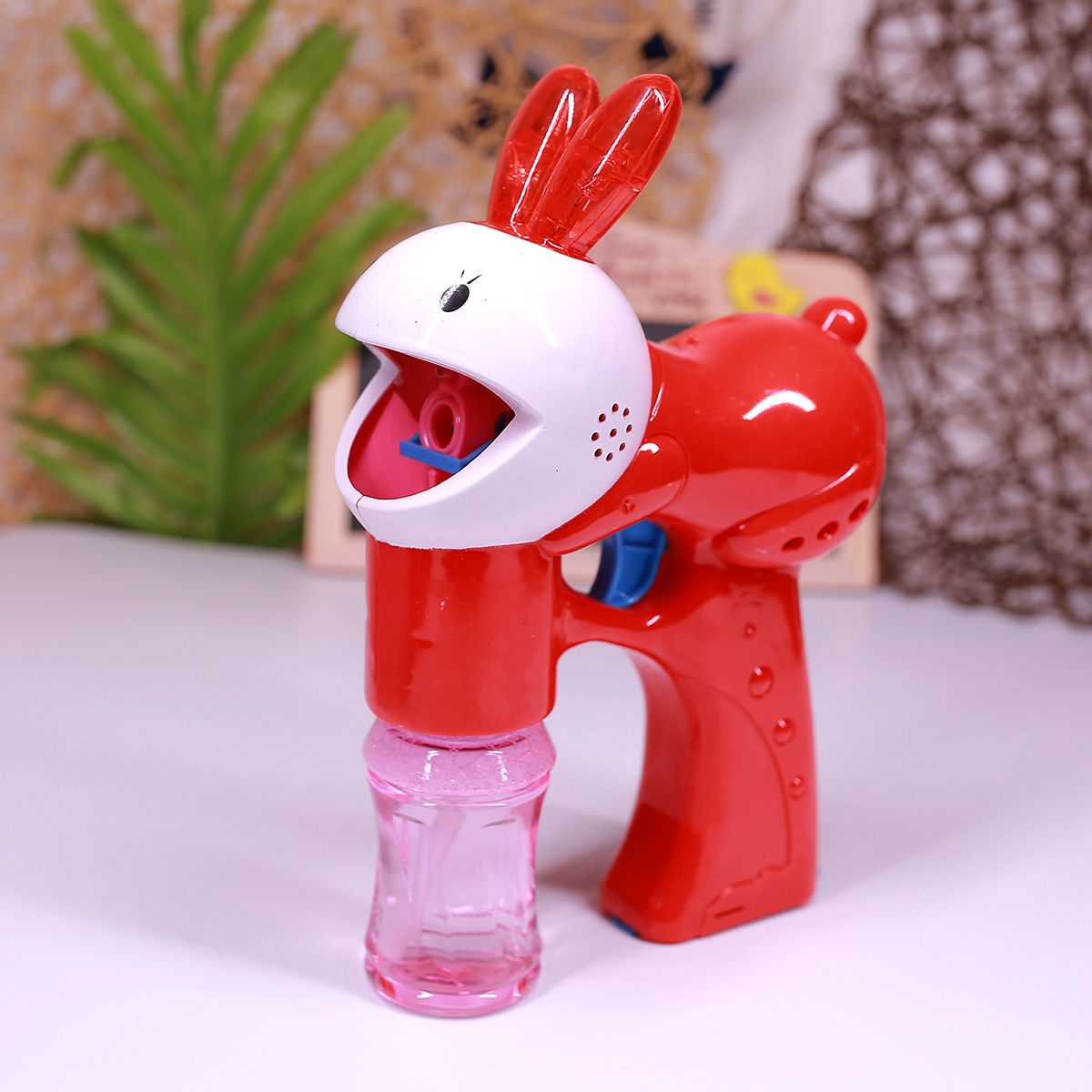 - Súng với cấu tạo đặc biệt thổi được cực nhiều bong bóng cùng một lúc kết hợp với anh đèn led, âm thanh giúp tăng thêm sự hấp dẫn cho bé.