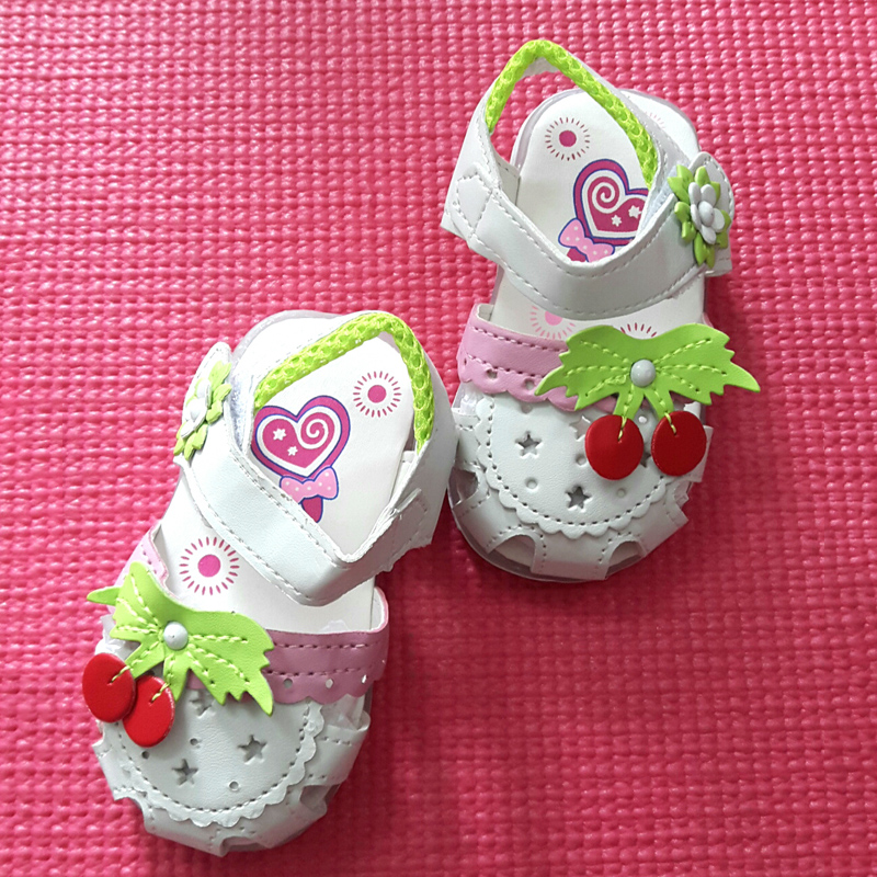 - Sandal dành cho bé gái với màu sắc nhã nhặn, đính quả cherry với bên trong được in hình ngộ nghĩnh