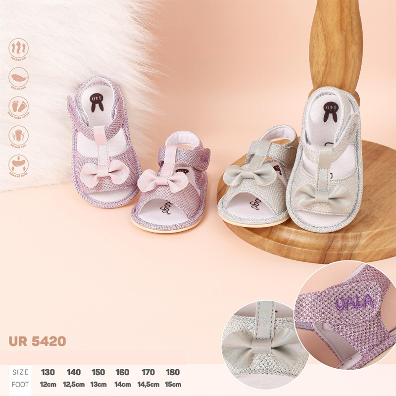 Với thiết kế đính nơ cùng gam màu hồng, sandal tập đi đế cao su non Uala UR5420 sẽ là phụ kiện không thể thiếu đối với các bé gái khi bắt đầu bước đi. Sản phẩm với chất liệu vải mềm kết hợp với đế bằng cao su non, bám dính tốt mang đến cảm giác thoải mái, không bị bít chân.