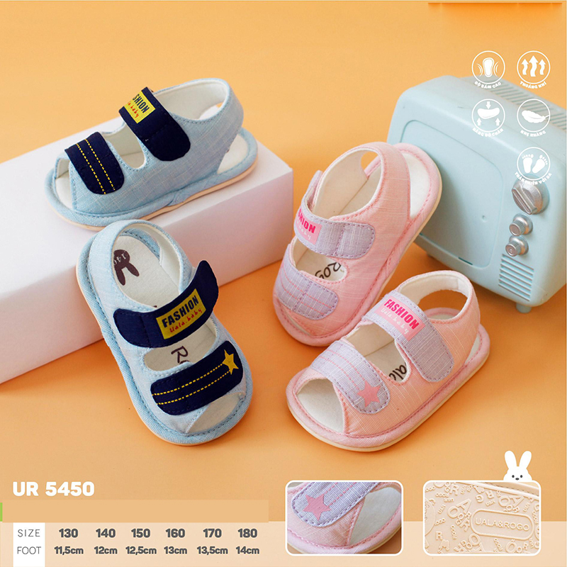 Sandal tập đi đế cao su non Uala UR5450 có độ bền rất tốt, đường may rất chắc chắn nên có thể sử dụng được trong nhiều năm mà không lo bị sờn, rách. Ngoài chất vải cotton mềm mại, dép còn nổi bật với đế cao su non êm ái cho bé vững vàng trên những bước đi đầu đời.