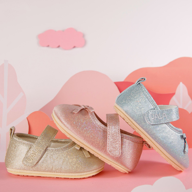 Sandal tập đi đế cao su non Uala UR5459 với thiết kế đơn giản kiểu dáng giày búp bê hiện đại cùng với sự kết hợp hài hòa của những gam màu óng ánh và sắc màu tươi sáng tạo cảm giác năng động, tự tin và thoải mái cho bé.