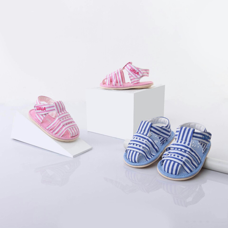 Sandal tập đi với vải kẻ sọc, gam màu tươi sáng
