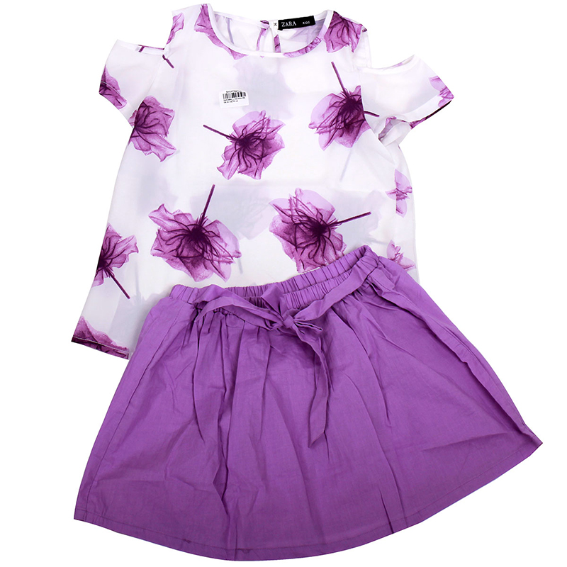 - Set áo váy hở vai cho bé gái có kiểu dáng điệu đà, dễ thương