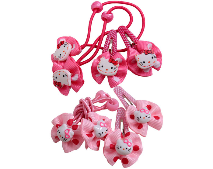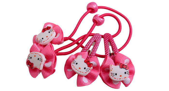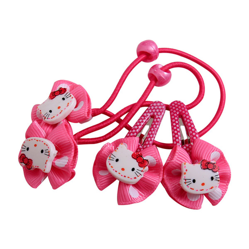 Set phụ kiện dây buộc - kẹp tóc sẽ giúp mẹ làm điệu cho gái yêu mỗi ngày đồng thời giúp đầu tóc bé luôn gọn gàng, dễ thương khi đi học, đi chơi. Bộ sản phẩm gồm 4 món : 2 dây buộc + 2 kẹp tóc với tone màu hồng và nơ in hình kitty, bằng chất liệu an toàn cho trẻ.