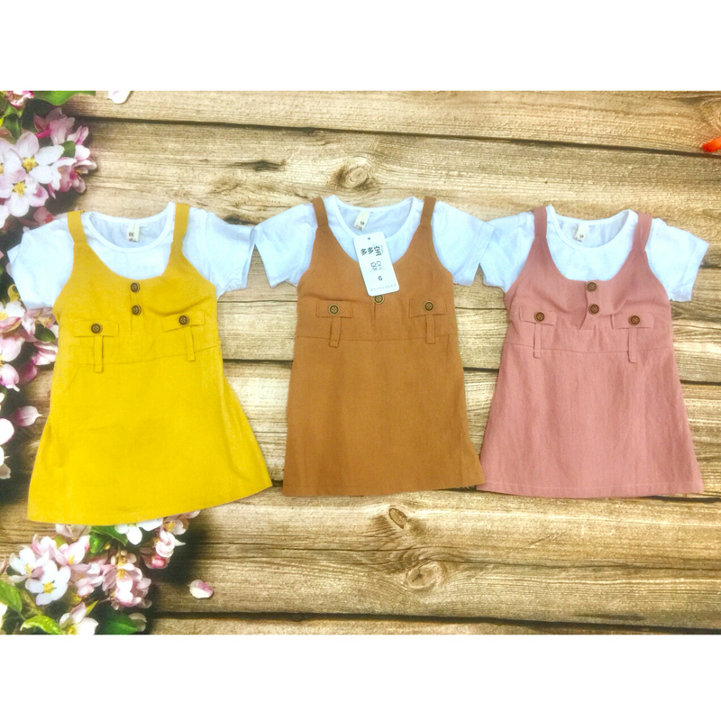 - Gồm: 1 váy đính cúc + 1 áo phông ngắn tay