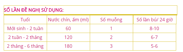 - Lượng pha dư hơn một lần uống phải được bảo quản trong tủ lạnh ở 2-4 độ C không quá 24 giờ. Khi cho bé bú chỉ dùng tối đa trong vòng 1 giờ, sau đó phải đổ bỏ.