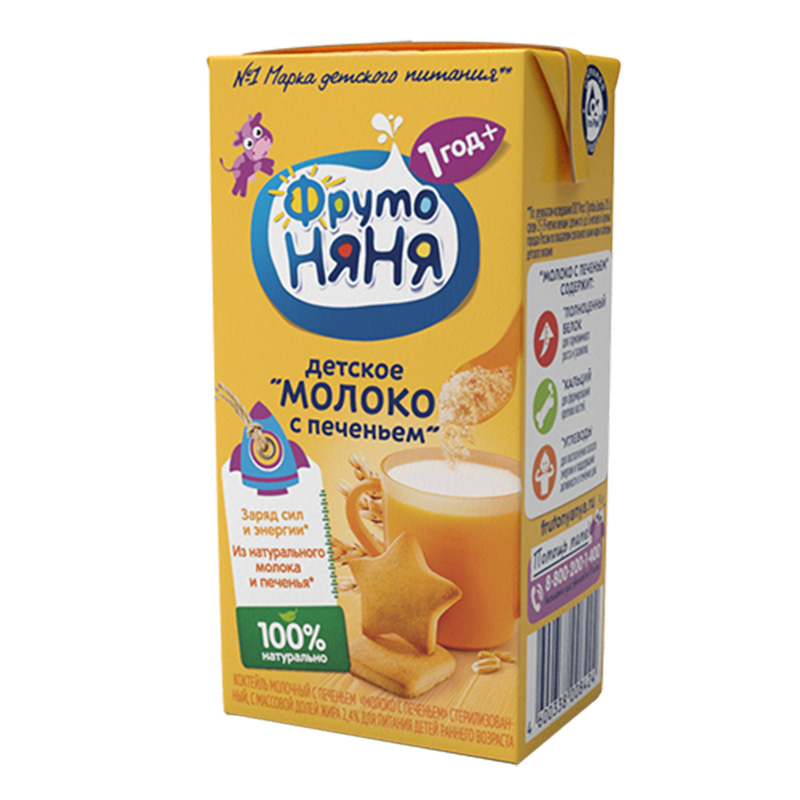 Sữa với bánh quy là một món ăn nhẹ phong phú và tăng cường đề kháng và khỏe mạnh. Sữa bích quy Fruto Nyanya bổ sung nhiều vitamin" canxi - giúp tăng cường hệ xương, D3 - thúc đẩy hấp thụ canxi; i ốt - để phát triển hoạt động nhận thức, prebiotic inulin - cải thiện tiêu hóa.