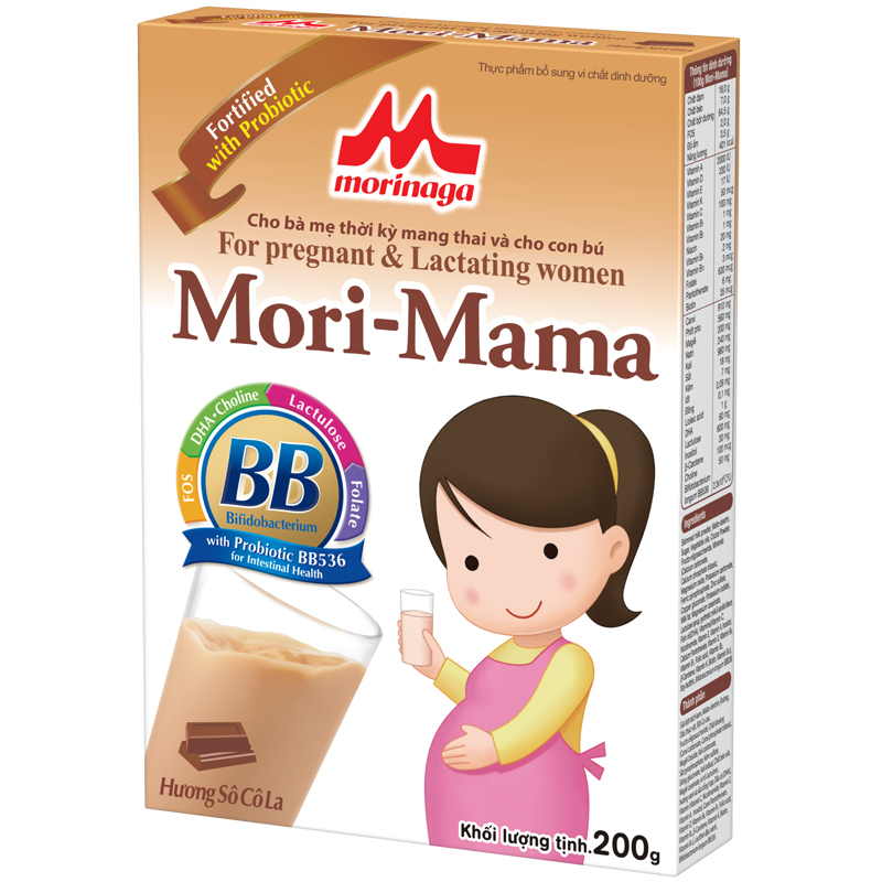 Sữa bầu Mori-Mama 200g (Sữa Morinaga Mama) là thực phẩm bổ sung vi chất dinh dưỡng cho bà mẹ thời kỳ mang thai và cho con bú. Tăng cường dưỡng chất Bifidobacterium BB536, Lactulose và FOS giúp cải thiện hệ vi sinh đường ruột, nâng cao hệ miễn dịch, ngăn ngừa tình trạng táo bón thường gặp trong thai kỳ.