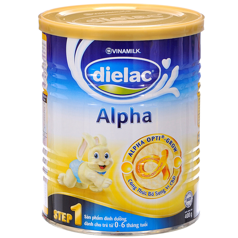 Sữa Dielac Alpha số 1 hộp thiếc 400g với công thức Alpha Opti-Grow bổ sung vi chất dinh dưỡng dành cho trẻ từ 0-6 tháng tuổi được sản xuất theo tiêu chuẩn thực phẩm Quốc tế - Codex và nhu cầu dinh dưỡng khuyến nghị - RNI của Bộ Y Tế - Việt Nam. Khi sữa mẹ không đủ, mẹ có thể cho con sử dụng sữa Dielac của Vinamik để bé phát triển toàn diện.