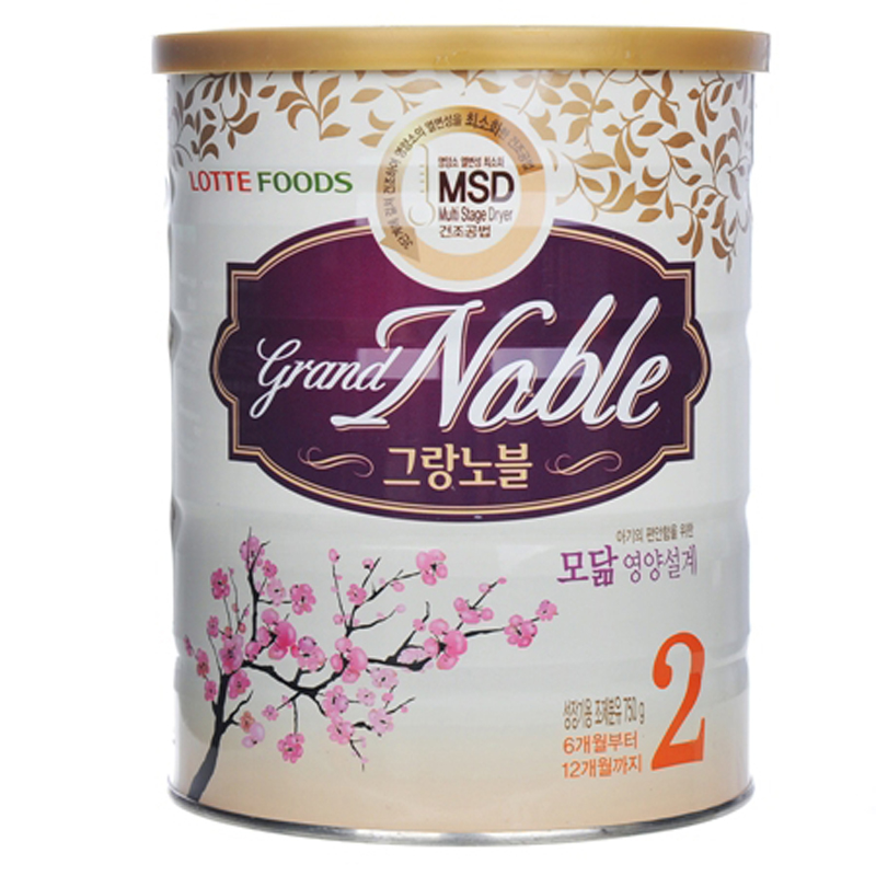 Dành cho bé từ 6-12 tháng tuổi, sữa bột Grand Noble MSD số 2 được sản xuất trên dây chuyền khép kín, ứng dụng công nghệ MSD trong sản xuất đảm bảo tốt nhất hàm lượng dinh dưỡng cho bé. Sản phẩm nhập khẩu nguyên lon 100% từ Hàn Quốc, được kiểm tra nghiêm ngặt và được cấp giấy chứng nhận từ các tổ chức y tế lớn trên thế giới. Sữa không sử dụng chất tạo mùi và chất bảo quản, hạn sử dụng được khắc trên lon sữa càng khiến các bà mẹ yên tâm hơn cho quyết định lựa chọn sản phẩm của mình.