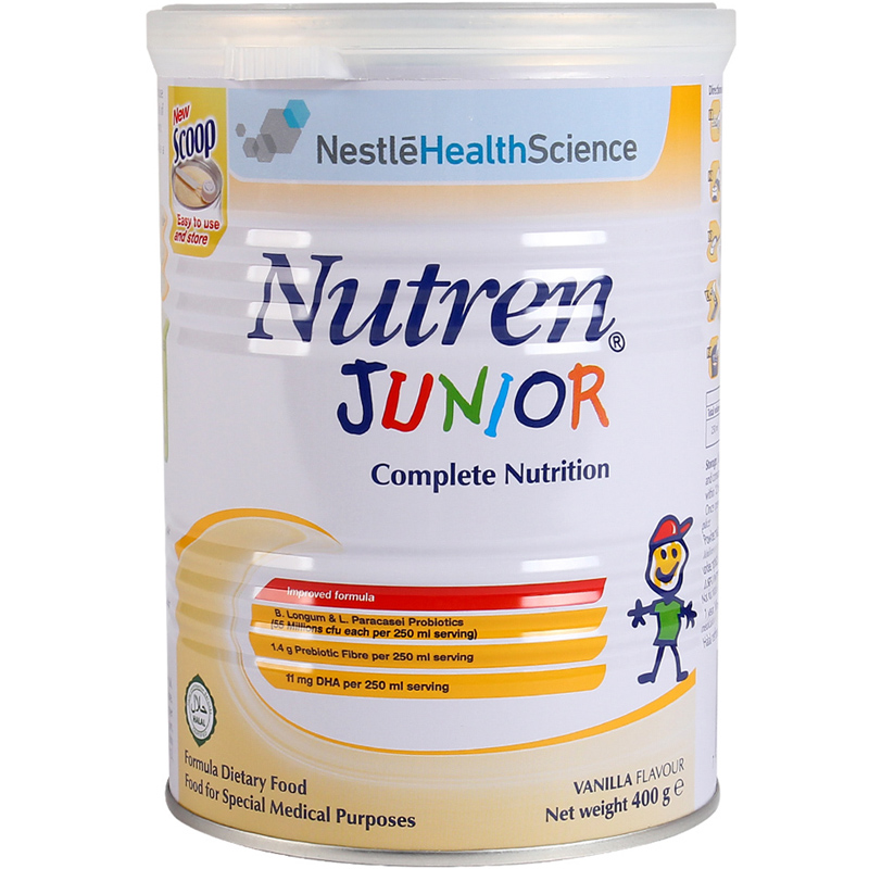 - Nestlé Nutren Junior bổ sung hàm lượng cao DHA (11mg DHA / 250ml đã pha) - dưỡng chất tốt cho hoạt động não bộ và thị giác của trẻ trong giai đoạn đầu đời.