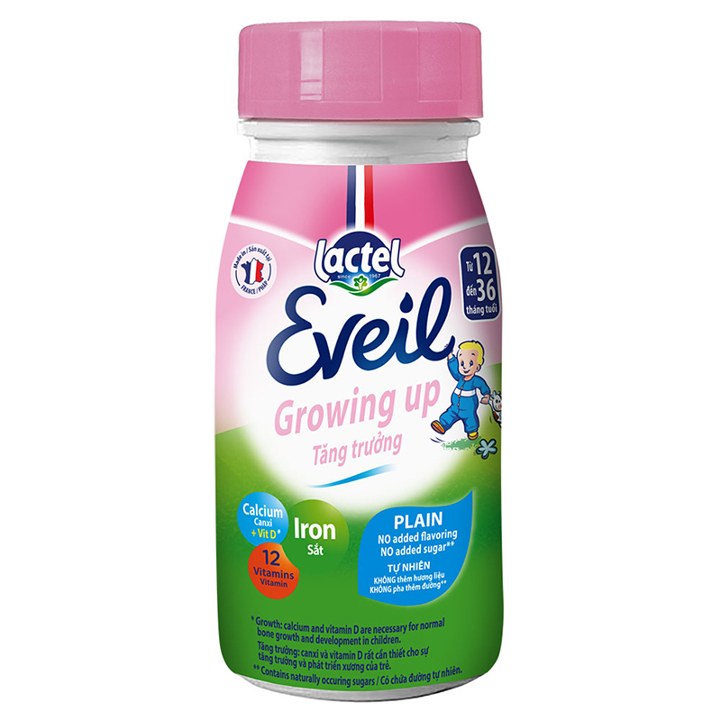 Sữa uống liền Lactel Eveil, hoàn toàn không thêm hương liệu, cung cấp các chất dinh dưỡng cần thiết cho trẻ nhỏ từ 1 đến 3 tuổi: