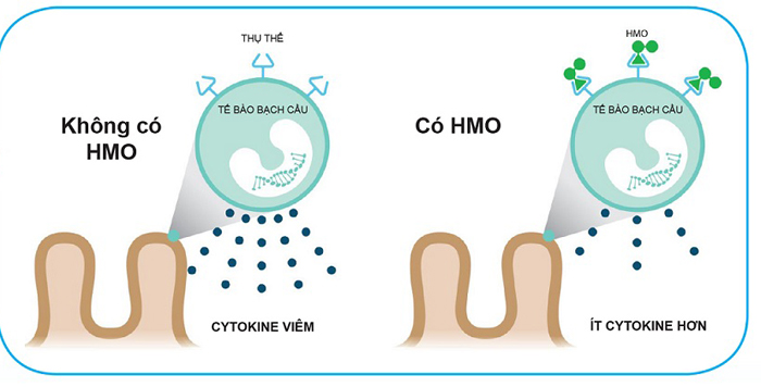 - HMO có thể gắn vào bề mặt tế bào và điều hòa quá trình giải phóng các yếu tố viêm nhiễm là một trong các vài trò rất đặc biệt và các nhà nghiên cứu dinh dưỡng Abbott tin rằng HMO có thể là một trong những lý do chính của việc cho con bú sữa mẹ cung cấp các lợi ích sức khỏe miễn dịch.