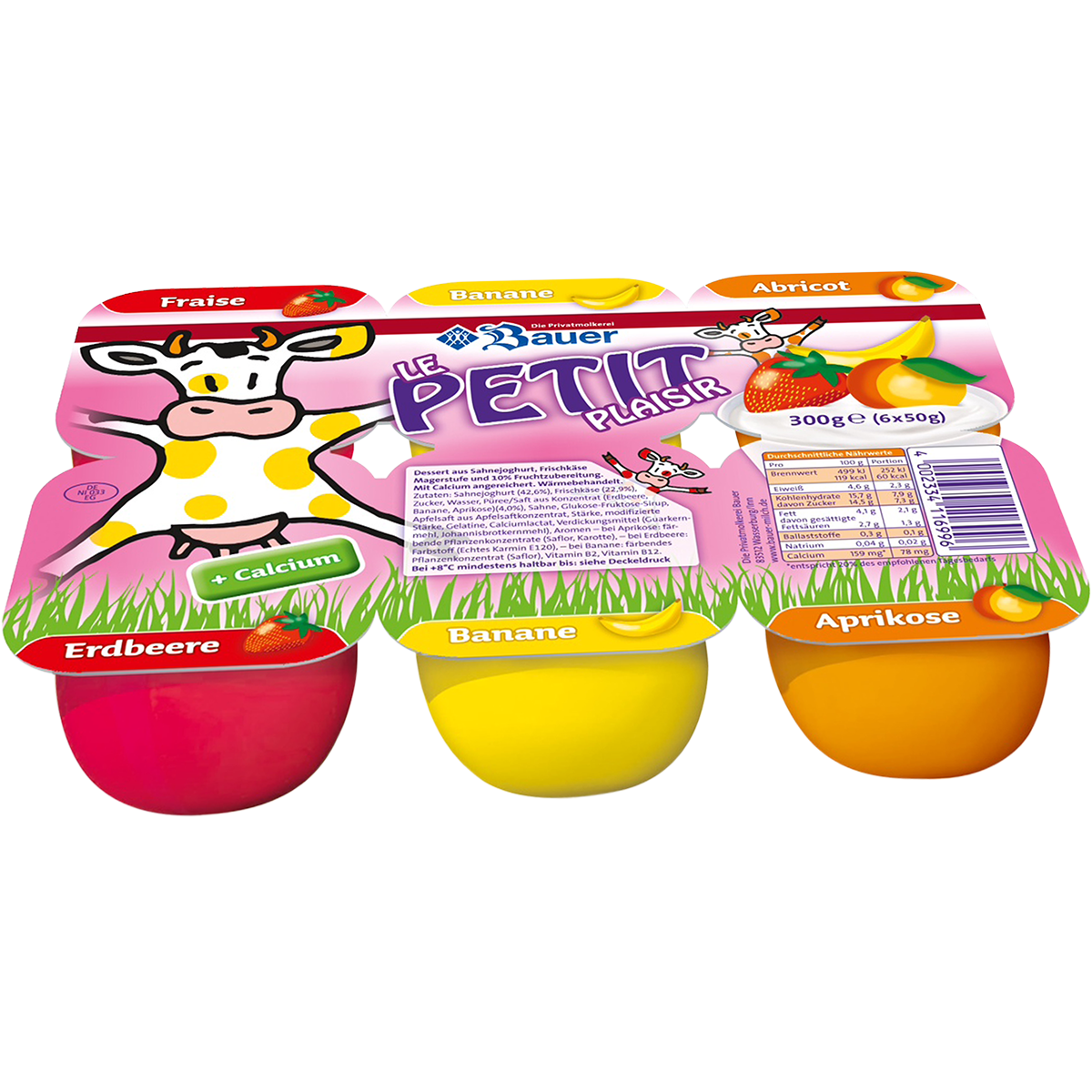 Sữa chua hoa quả Bauer Petit là loại phô mai từ hoa quả tươi, có bổ sung thêm váng sữa. Cùng với lượng canxi và men tiêu hóa bổ sung giúp trẻ ăn ngon miệng, tăng trưởng chiều cao, bảo vệ đường ruột. Sữa chua hoa quả Bauer Petit có vị béo, thơm mát rất thích hợp với khẩu vị của trẻ em, và hoàn hoàn không chứa chất bảo quản.