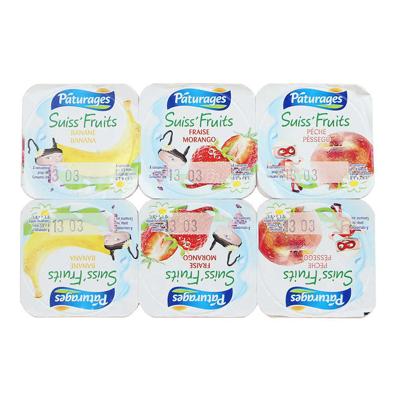 - Sữa chua Paturages gồm các vị hoa quả như: chuối, dâu tây, đào, mơ... kết hợp với phô mai béo ngậy và giàu Canxi.