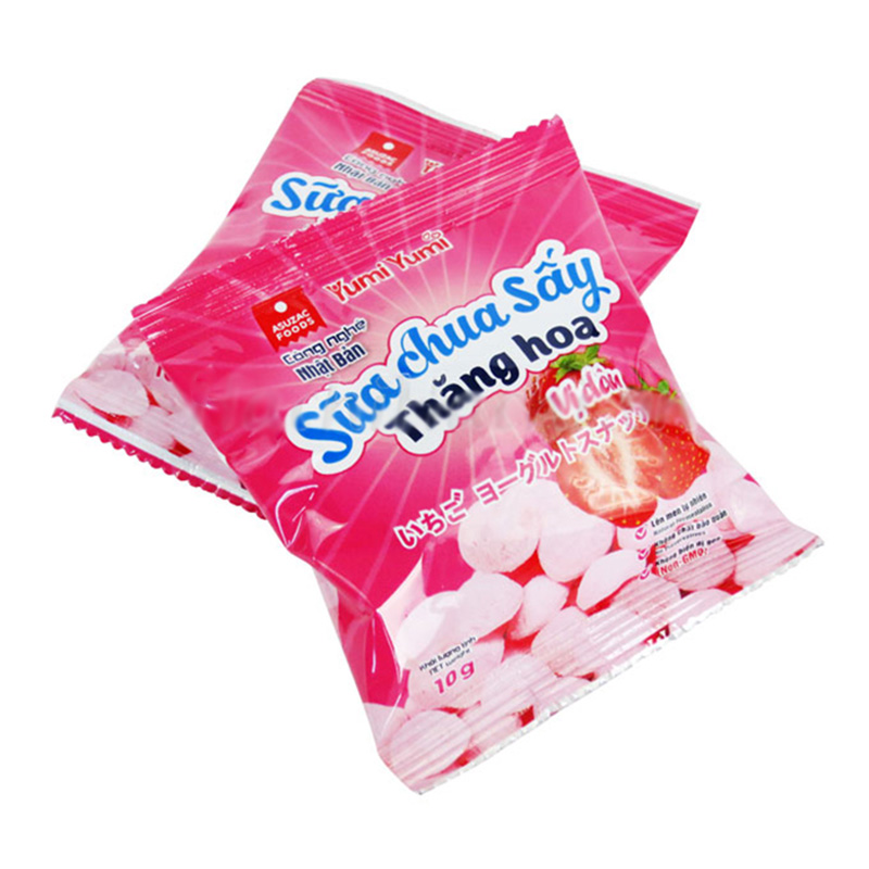 Sữa chua sấy khô Asuzac vị dâu được sản xuất tại Việt Nam với công nghệ hiện đại của Nhật Bản