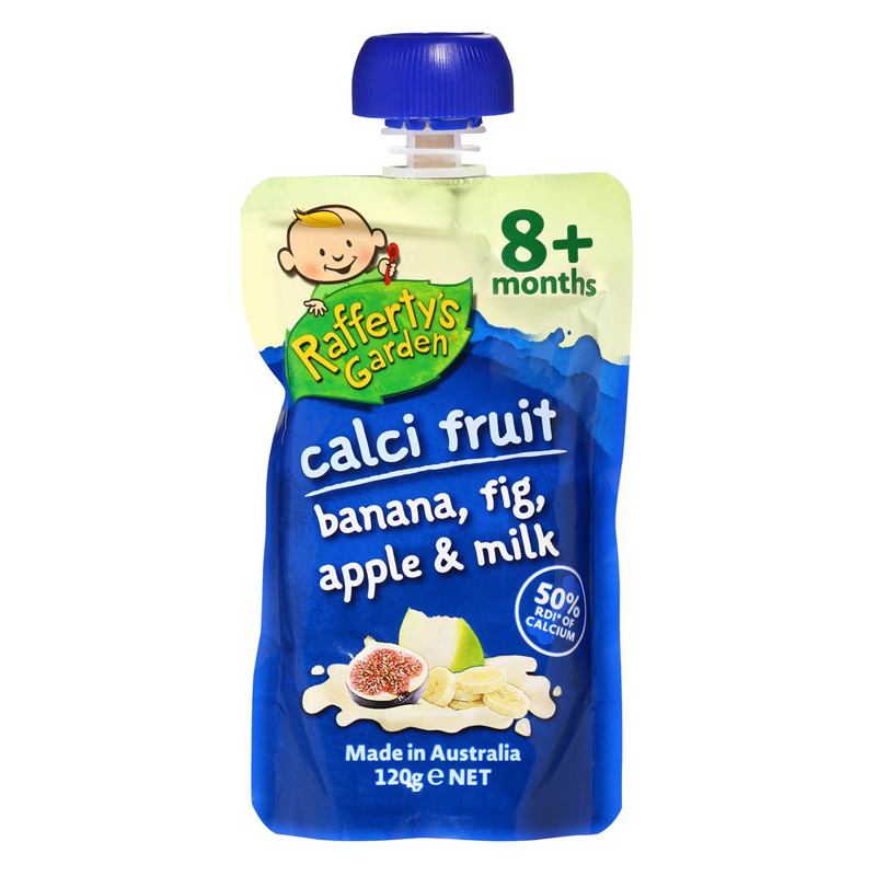 Sữa chua trái cây canxi Rafferty's Garden - Chuối, sung, táo (8m+) là thức ăn dinh dưỡng dùng ngay dành cho các bé từ 8 tháng trở lên. Ngoài các loại trái cây tự nhiên kết hợp với sữa chua, sản phẩm còn được bổ sung thêm canxi, giúp phát triển hệ xương cho trẻ.
