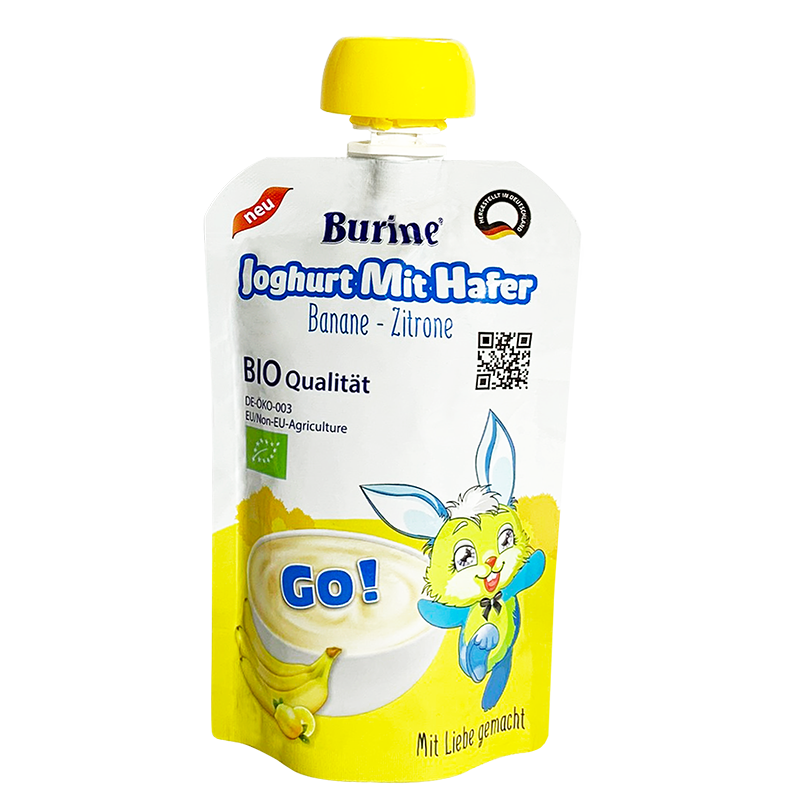 Sữa chua yến mạch Burine Organic vị chuối, chanh 95g