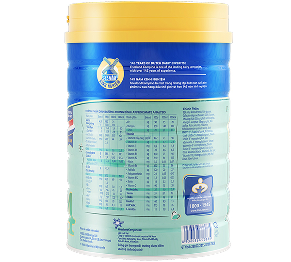 Từ 2 tuổi trở lên, bé phát triển vượt bậc về khả năng nói, sử dụng ngôn ngữ và muốn tự mình làm mọi việc. Sữa Friso Gold số 4 (900g) với thiết kế cải tiến mới, cung cấp đầy đủ dưỡng chất cũng như mang lại cho bé nguồn dịnh dưỡng cần thiết ngoài các bữa ăn chính, giúp bé phát triển khả năng học hỏi, thông minh hơn.
