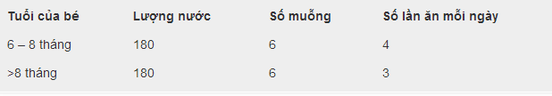 Ghi chú: số lần ăn có thể thay đổi để phù hợp với chế độ ăn dặm.