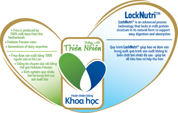 - Quy trình LOCKNUTRI giúp bảo vệ chất lượng tự nhiên của dưỡng chất, đặc biệt là đạm, nên giúp bé dễ hấp thu và tiêu hóa tốt