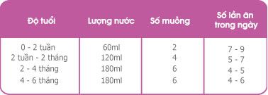 - Bảng liều lượng trên chỉ là bảng hướng dẫn. Nhu cầu của mỗi bé khác nhau, có thể ăn tăng lên hoặc giảm đi so với bảng hướng dẫn liều lượng