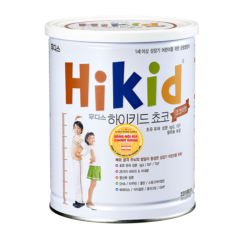 Sữa Hikid - Hàn Quốc vị Socola (650g) là dòng sữa đặc thù của Hàn Quốc, giúp bé tăng trưởng vượt trội về chiều cao, cân nặng trong giai đoạn từ 1 - 9 tuổi. Sữa không chỉ cung cấp đầy đủ 5 dưỡng chất chính cần thiết cho tăng trưởng và phát triển đồng đều của trẻ mà còn tăng cường hơn 60 dinh dưỡng tốt cho sự tăng cường hệ miễn dịch, phát triển trí não và tiêu hóa tốt.