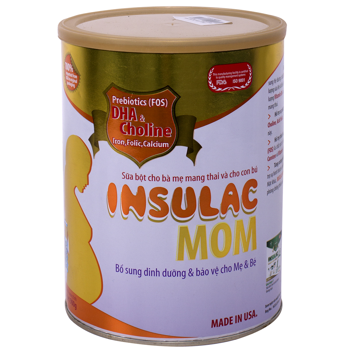 Insulac Mom được đặc chế theo tiêu chuẩn FDA, 100% nguyên liệu- sản xuất và đóng gói nhập khẩu từ Hoa Kỳ bổ sung dinh dưỡng cho phụ nữ đang mang thai và cho con bú, chứa nhiều loại Vitamin và dưỡng chất thiết yếu cho mẹ và bé: