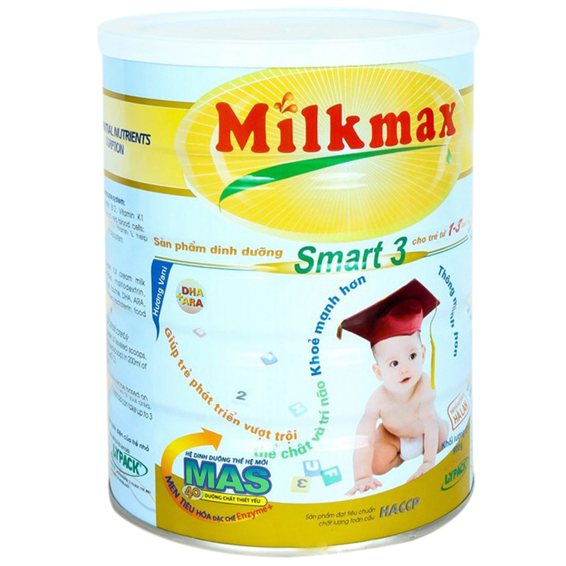Sữa Milkmax Smart 3 (900g) được các chuyên gia dinh dưỡng giàu kinh nghiệm của tập đoàn Ausnutria – Hyproca nghiên cứu và đưa ra công thức với hệ dinh dưỡng thế hệ mới MAS, cung cấp đầy đủ và cân đối dưỡng chất thiết yếu cho nhu cầu phát triển trí não, thị giác, xương và răng, tăng sức đề kháng, đồng thời giúp trẻ hấp thu và tiêu hóa tốt hơn với các thành phần như: DHA, ARA, Omega 3, Omega 6, i-ốt, Vitamine nhóm A, B, C,D, K,E, PP…Sản phẩm được đóng trong hộp thiếc, dành cho bé trong giai đoạn từ 1 -3 tuổi.