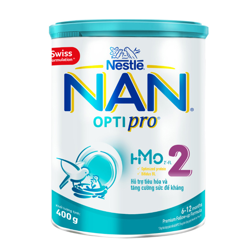 Sữa NAN HMO Optipro số 2 - 400g dành cho bé từ 6 đến 12 tháng tuổi giúp cải thiện sự cân bằng của hệ vi khuẩn đường ruột, hỗ trợ hệ miễn dịch cho bé. Ngoài ra, đường Lactose 100% không thêm đường mía, mang đến vị thanh mát, gần hơn với sữa mẹ. Với hàm lượng Canxi, Vitamin D vừa đủ giúp cho cơ thể bé hấp thu các chất dinh dưỡng tốt hơn ngoài ra chúng còn hỗ trợ phát triển hệ xương và răng