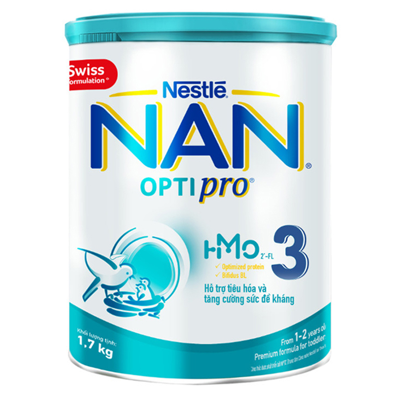 Nan Optipro là dòng sữa trẻ em được các Mẹ Việt tin dùng bởi chất lượng của sản phẩm đã được kiểm định khắt khe theo tiêu chuẩn Châu Âu. Hiện nay sản phẩm đã có diện mạo mới với thay đổi hoàn toàn từ thiết kế vỏ hộp đến trọng lượng sản phẩm cũng đa dạng với nhiều lựa chọn hơn cho các Mẹ. Sữa Nan HMO Optipro số 3 với trọng lượng 1,7kg sẽ giúp các Bé phát triển thể chất toàn diện nhờ vào việc bổ sung các nguyên tố vi lượng như Canxi, Vitamin D,...