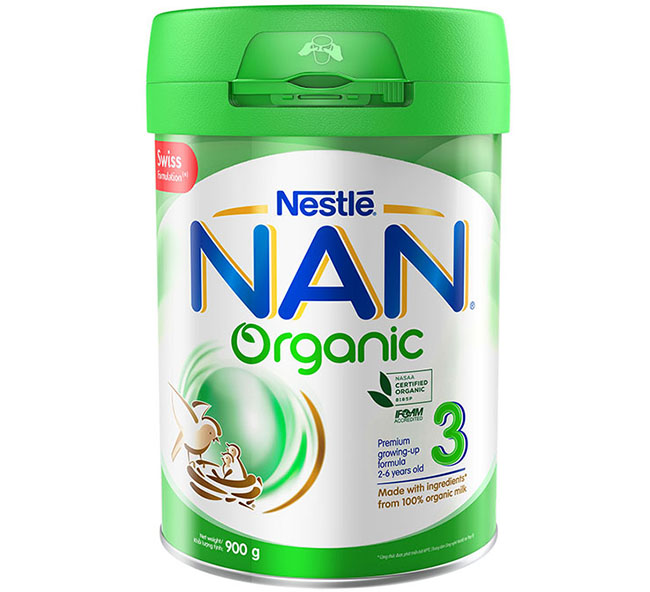 Sữa NAN Organic số 3 hộp 900g dành cho bé từ 2 đến 6 tuổi được bổ sung Canxi, Vitamin D hỗ trợ rất tốt cho việc phát triển hệ xương và răng cho bé. Sữa NAN số 3 đáp ứng tiêu chuẩn hữu cơ khắt khe của NASAA, cơ quan chứng nhận hữu cơ của Úc. Những thành phần có nguồn gốc từ những trang trại mà những con bò được tiếp cận với không khí trong lành và ăn các thức ăn hữu cơ
