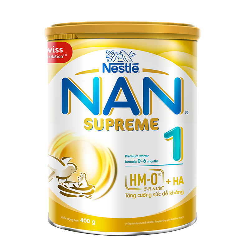 Sữa Nan Supreme số 1 (400g) với công nghệ đạm thủy phân một phần (HA), hương vị được cải tiến phù hợp với trẻ nhỏ, giúp phòng ngừa nguy cơ dị ứng, bổ sung 36 dưỡng chất thiết yếu, DHA, ARA và 100 triệu lợi khuẩn cho đường ruột. Đặc biệt bổ sung Oligosaccharide (HMO) hỗ trợ cho trẻ có hệ miễn dịch khỏe mạnh, cho trẻ một dinh dưỡng khởi đầu khỏe mạnh.