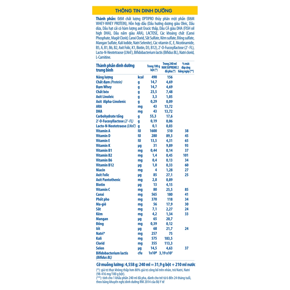 Sữa Nan Supreme số 2 với công thức cải tiếng mới, gấp đôi hàm lượng HA so với mẫu cũ