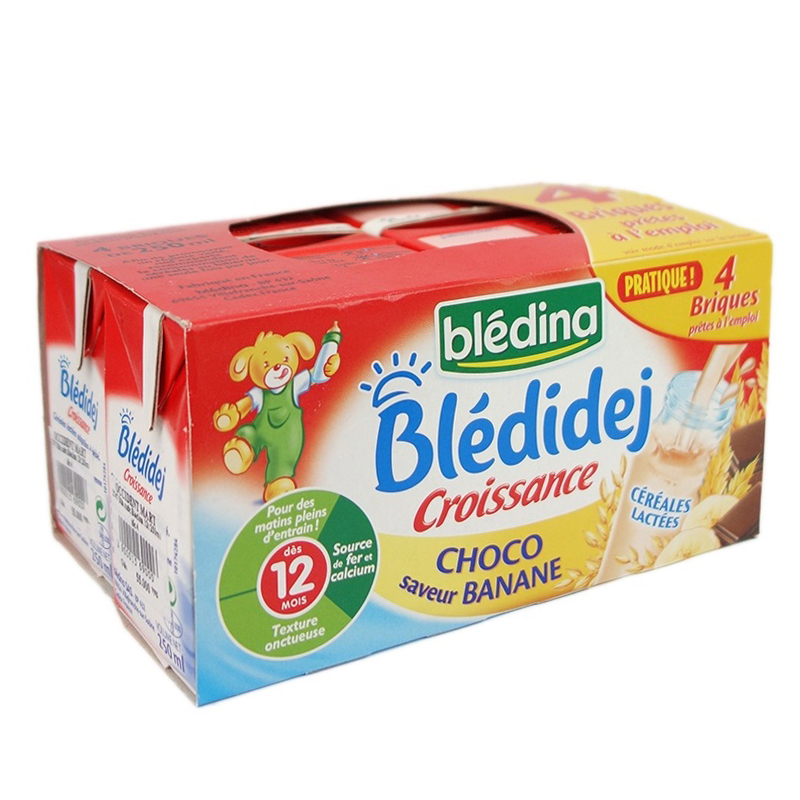 Sữa nước Bledina vị socola chuối (12M+) giàu dinh dưỡng, thơm ngon, béo ngậy và đặc biệt phù hợp với khẩu vị của bé từ 12 tháng trở lên. Sữa có bổ sung thêm tinh chất bột ngũ cốc tạo nên kết cấu hơi sệt sệt.. giúp bé ăn ngon và no lâu hơn.