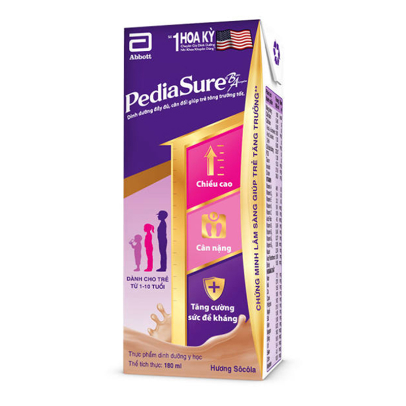 Sữa PediaSure hương Sôcôla (180ml/hộp) là sữa pha sẵn với công thức cải tiến giúp trẻ nhanh chóng bắt kịp và tiếp tục đà tăng trưởng tốt cả về thể chất và trí tuệ, phù hợp cho bé từ 1 - 10 tuổi. Sản phẩm được đóng gói dạng hộp với hương Sôcôla thơm ngon, tiện dụng để mẹ mang theo cho trẻ khi đi du lịch, đi học, đi chơi.