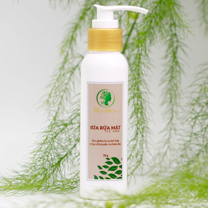 Sữa rửa mặt trà xanh Wonmom (70g) với chiết xuất từ tinh chất tự nhiên, giúp làm sạch sâu da, chống lão hóa, tái tạo làn da mới, giúp dưỡng ẩm, chống nắng, ngăn chặn sự hình thành nếp nhăn. Sử dụng thường xuyên sẽ giúp bạn ngăn ngừa mụn, giúp da mặt bạn trong sáng hơn, mềm mại và đẹp hơn.