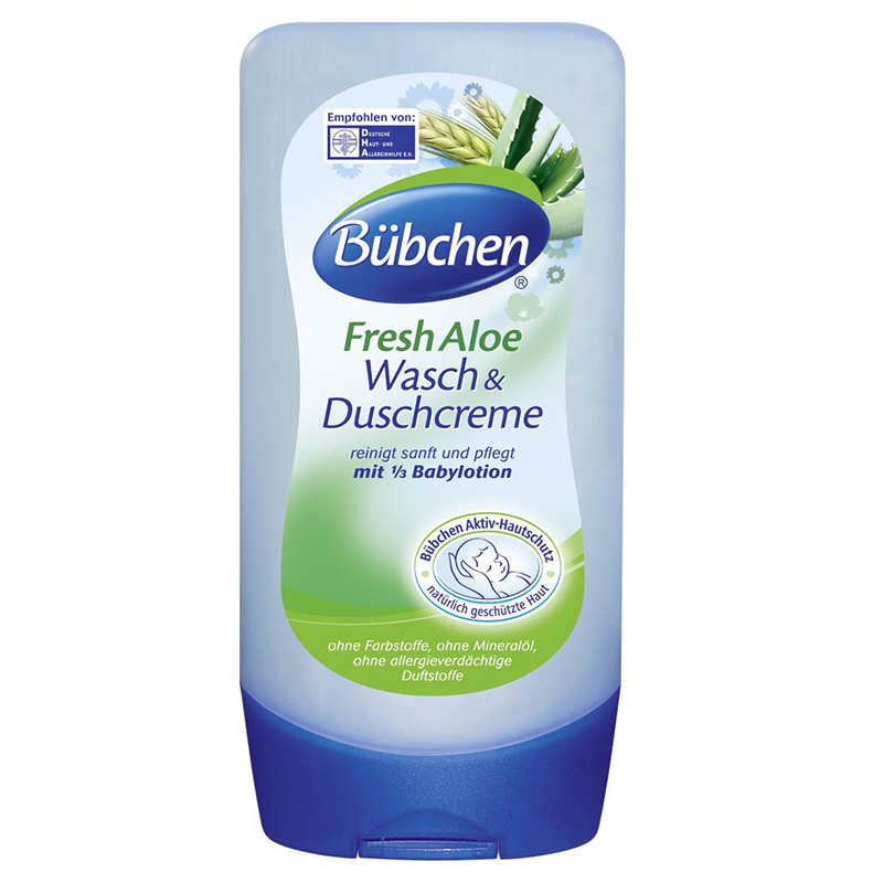 - Kem sữa tắm thơm mát của Bübchen vệ sinh da em bé đặc biệt nhẹ nhàng. Loại kem sữa tắm này cũng giúp cho làn da người lớn có cảm giác tươi mát suốt cả ngày.