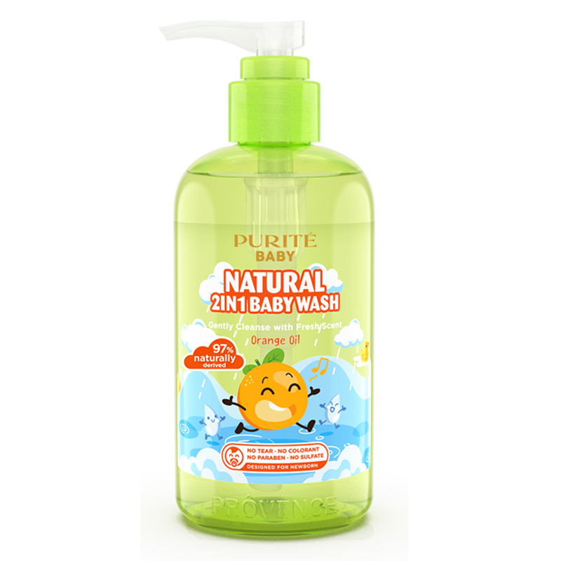 Dầu tắm gội 2 trong 1 Purité Baby tinh dầu cam với thành phần tự nhiên