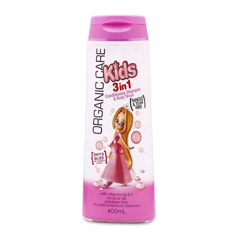 Sữa tắm gội tự nhiên 3in1 Organic Care Kids Berry Bliss (400ml) với thành phần có nguồn gốc từ thực vật, giúp nhẹ nhàng làm sạch và nuôi dưỡng da, tóc bé. Công thức không cay mắt, giàu Vintamin B5 & E với chiết xuất từ quả mâm xôi giúp làm sạch da nhẹ nhàng và chăm sóc tóc mềm mịn.