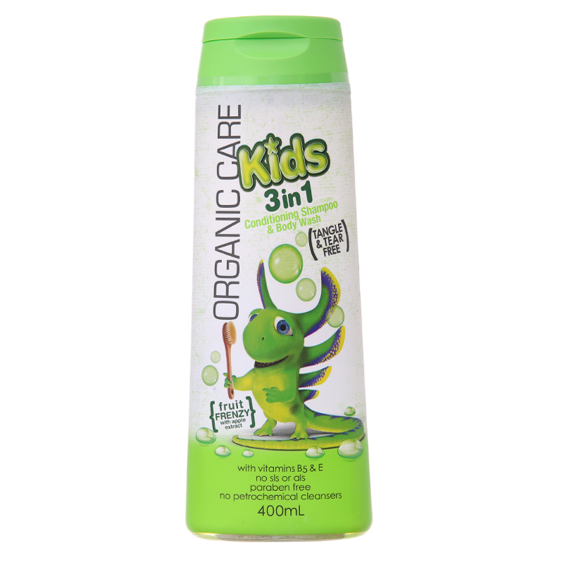 Với tinh chất táo xanh cùng công thức giàu vitamin B5 & E, sữa tắm gội tự nhiên 3in1 Organic Care Kids Fruit Frenzy (400ml) giúp chăm sóc da tóc cho bé một cách nhẹ nhàng. Sản phẩm với thành phần thực vật, an toàn cho trẻ và không làm cay mắt bé, giúp bé không còn cảm giác sợ sệt khi tắm gội.