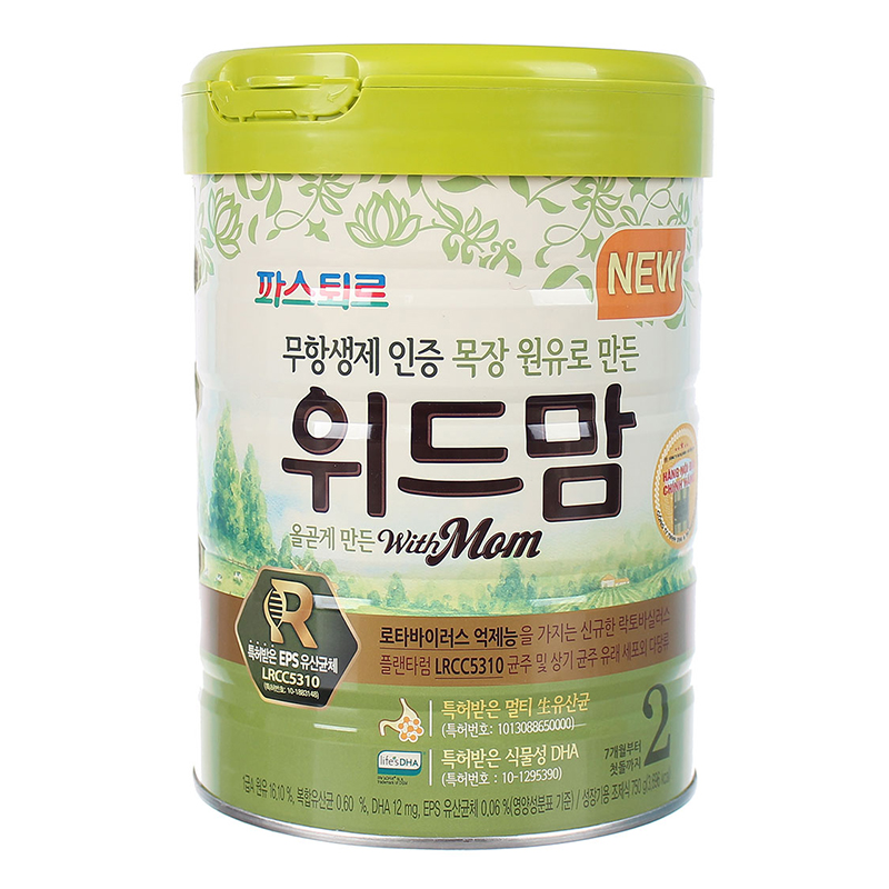 Sữa With Mom số 2 Hàn Quốc (750g) là dòng sản phẩm cao cấp đến từ Hàn Quốc, dành cho các bé trong giai đoạn từ 7 - 12 tháng. Sữa có chứa hệ Acid Lactic và hệ hệ Probiotics giúp bé không bị táo bón, tiêu chảy hay các vấn đề về đường tiêu hóa. Sản phẩm sử dụng nguyên liệu sữa tươi hữu cơ, đạt tiêu chuẩn HACCP, sản xuất bằng phương pháp MSD có khả năng giảm thiểu sự thất thoát dinh dưỡng trong quá trình chế biến