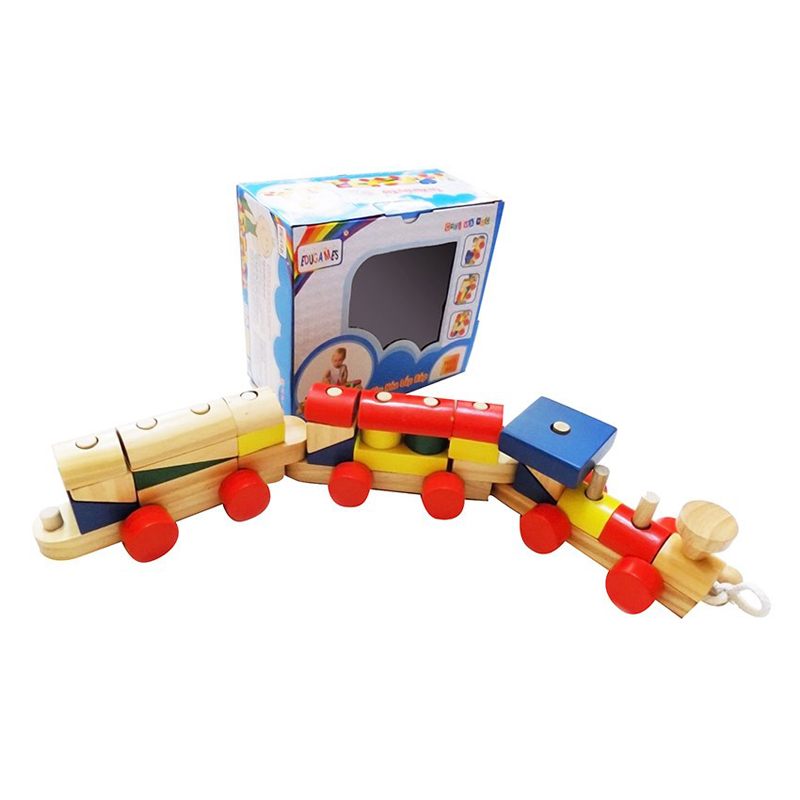 Đồ chơi gỗ lắp ráp hình đoàn tàu nhiều màu sắc