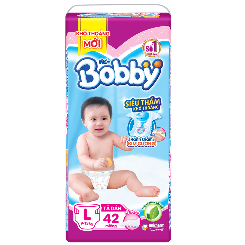 Bỉm dán Bobby L42 loại siêu mỏng, siêu thấm khô thoáng