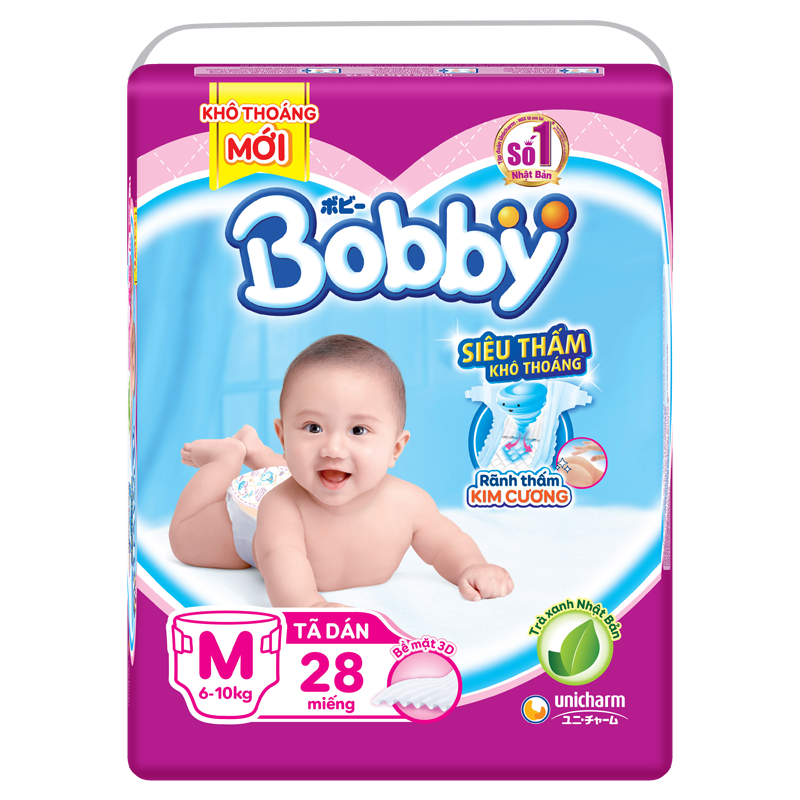 Bỉm - Tã dán Bobby M28 với lõi bông siêu dẫn thấm, độ thấm hút tối đa sẽ ngăn ngừa những khả năng để xảy ra sự đọng vũng, ẩm ướt…sẽ cho bé cả đêm ngon giấc với cảm giác khô thoáng. Bỉm là loại siêu thấm dành cho bé từ 6 -10kg, được làm hoàn toàn bằng chất liệu cao cấp đã qua kiểm định chất lượng nghiêm ngặt, an toàn cho bé.