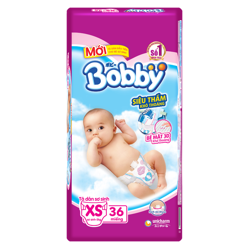 Tã dán Bobby sơ sinh XS36 làm hoàn toàn bằng chất liệu cao cấp là một lựa chọn thích hợp cho bé sơ sinh - 5kg. Sản phẩm với thiết mới đặc biệt siêu mềm mại, siêu thoáng khí với khả năng thấm hút cao cho da bé luôn êm mềm khô thoáng.