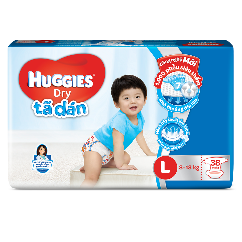 Bỉm dán Huggies L38 dành cho bé từ 8 đến 13kg