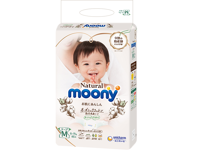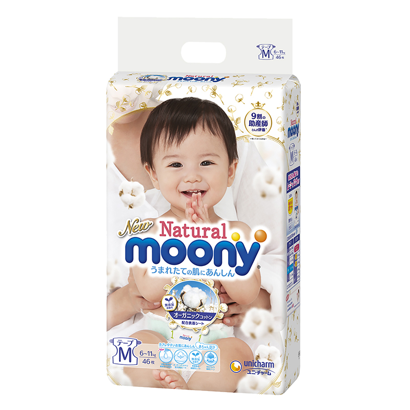 Tã dán Moony Natural M46 với bề mặt organic cotton đầu tiên tại Nhật Bản