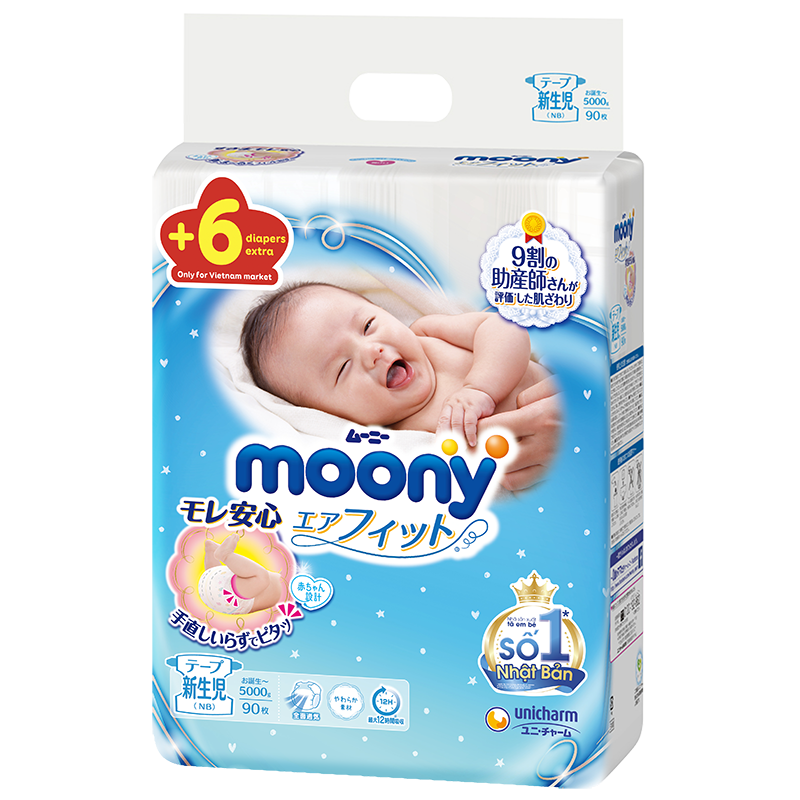 Bỉm dán moony NB90 được thiết kế dành bé dưới 5kg. Với chất lượng vượt trội cùng thiết kế độc quyền C-shape - thiết kế đặc biệt dành cho bé, tã dán Moony tự hào là dòng tã được Hiệp hội các bà mẹ Nhật Bản bình chọn là dòng tã em bé số 1.